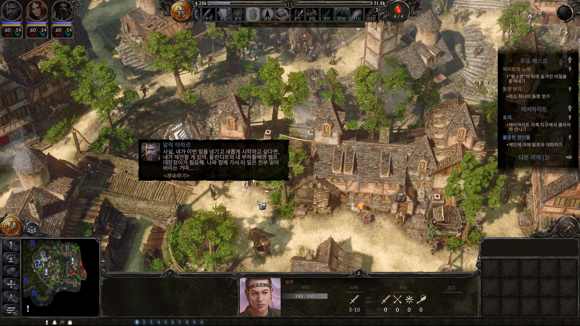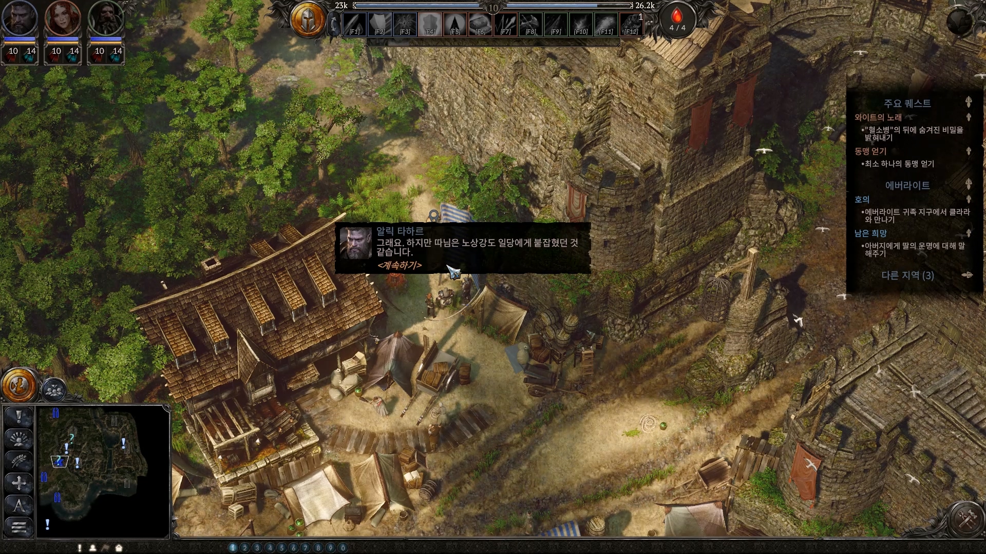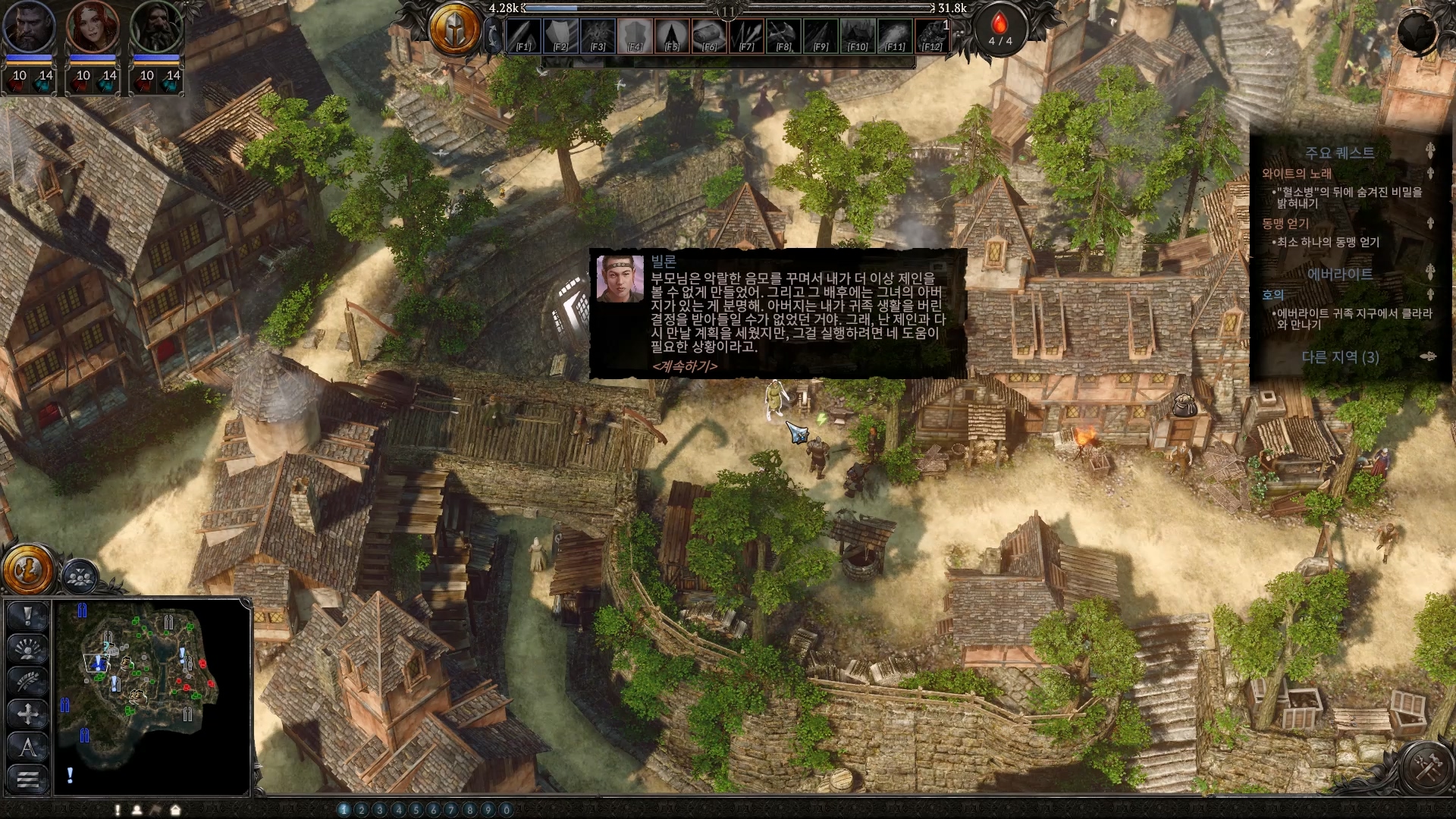 성 안으로 들어와서 엘프 대장장이 빌론에게 대화를 겁니다.