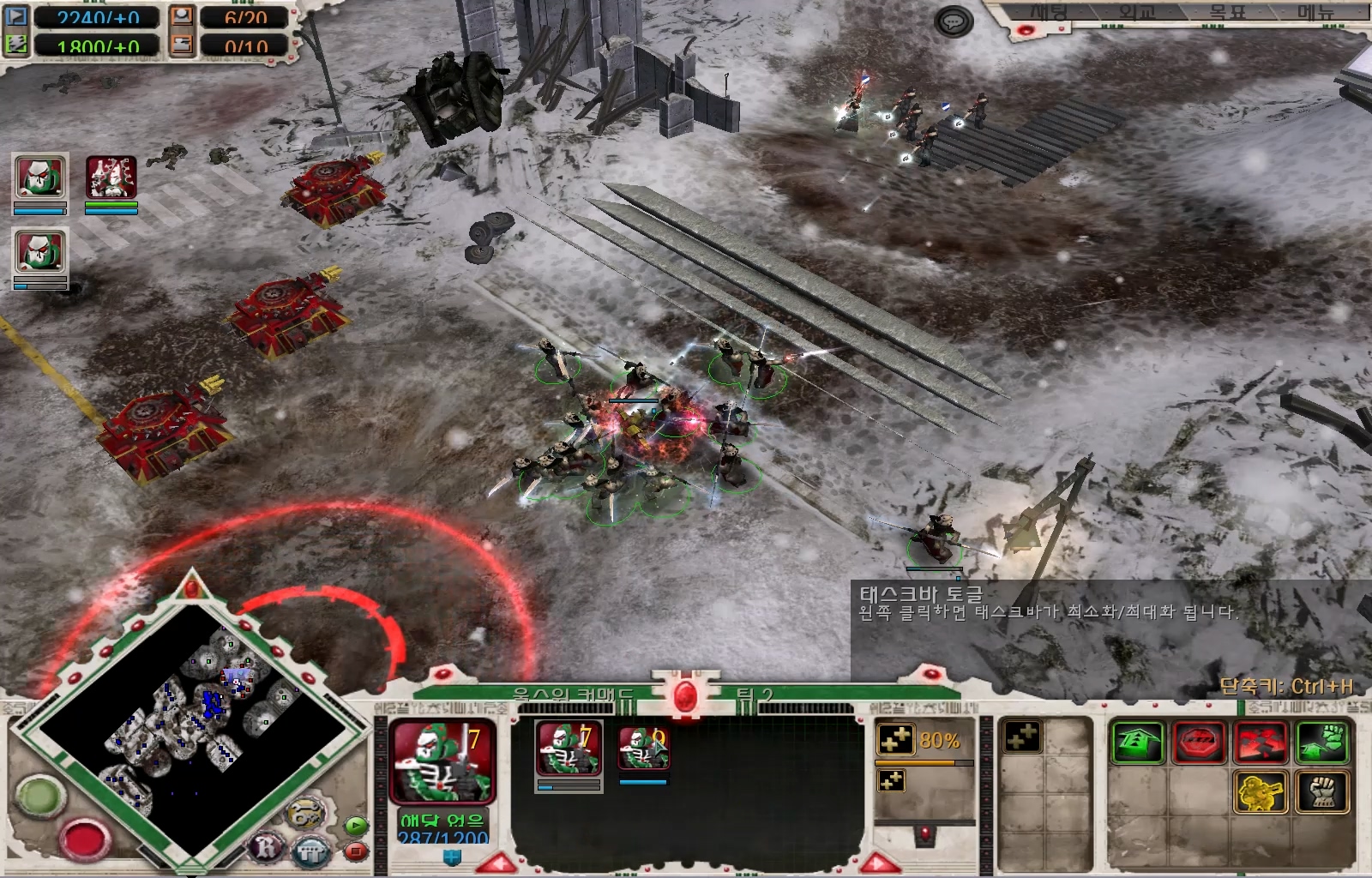 계속 진격하기 전에 중앙쪽에서 계속 병력을 보내 귀찮게하는 카오스 기지를 파괴합니다.