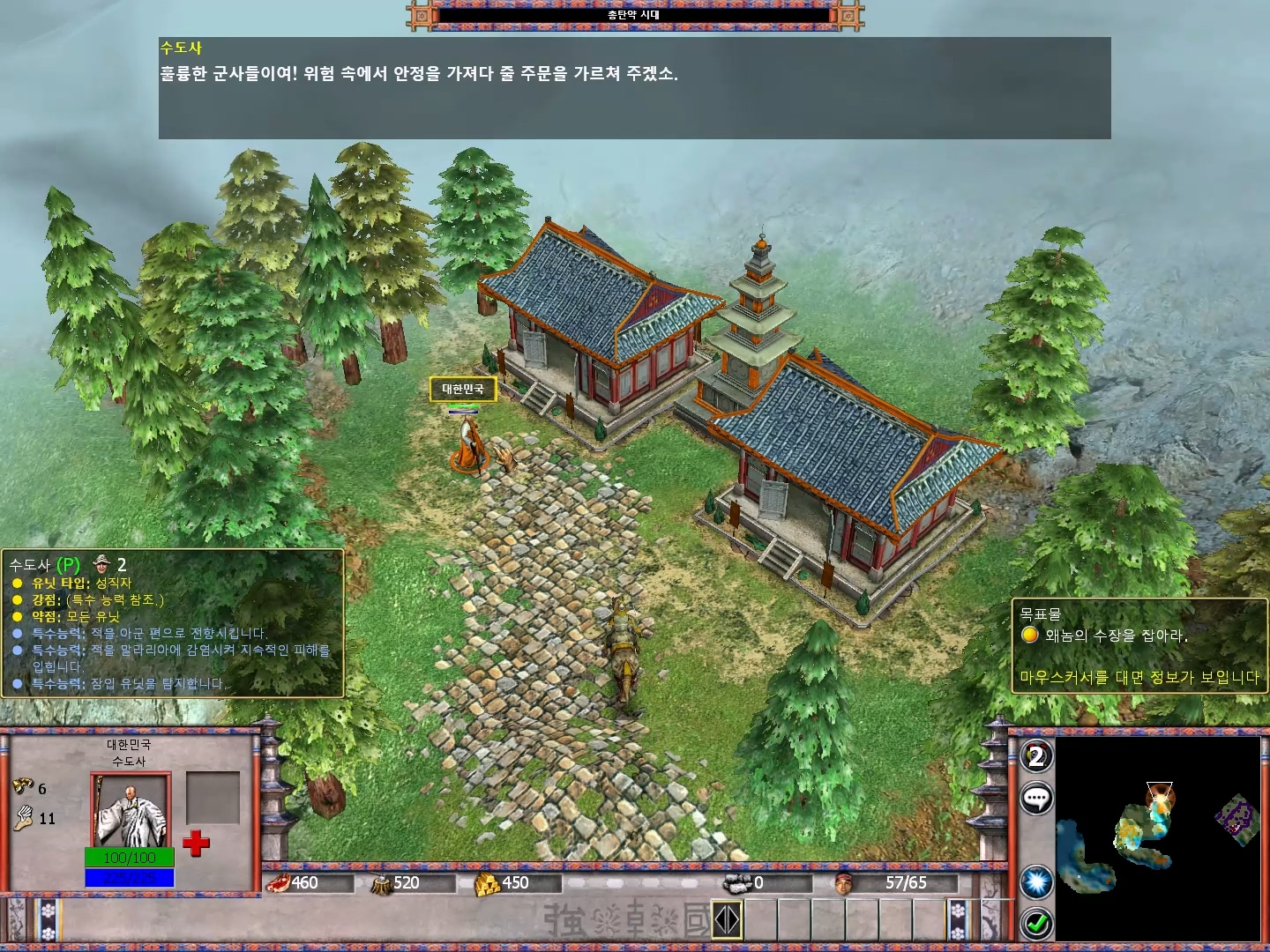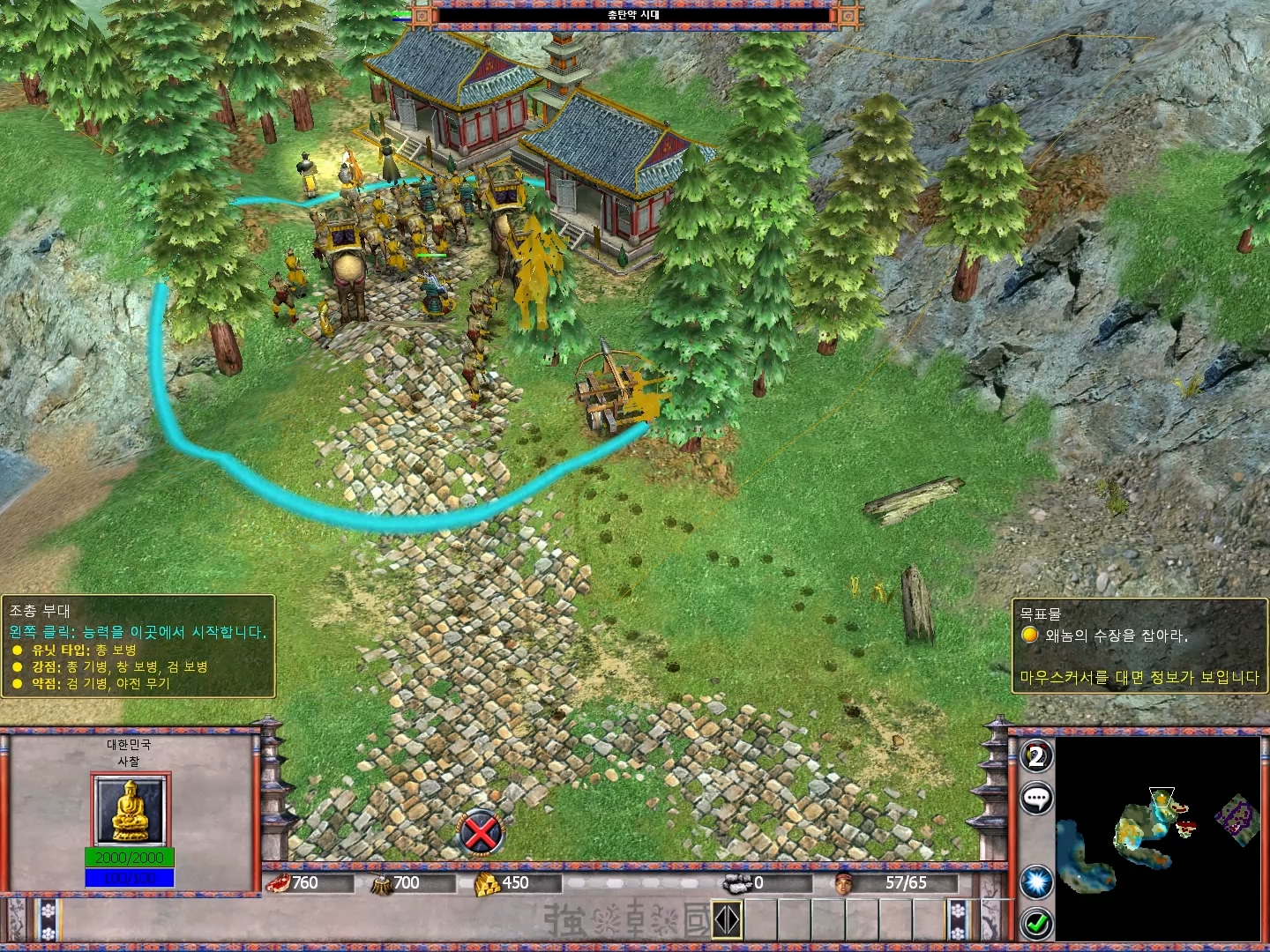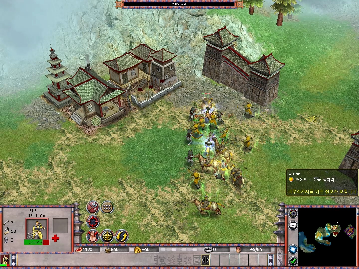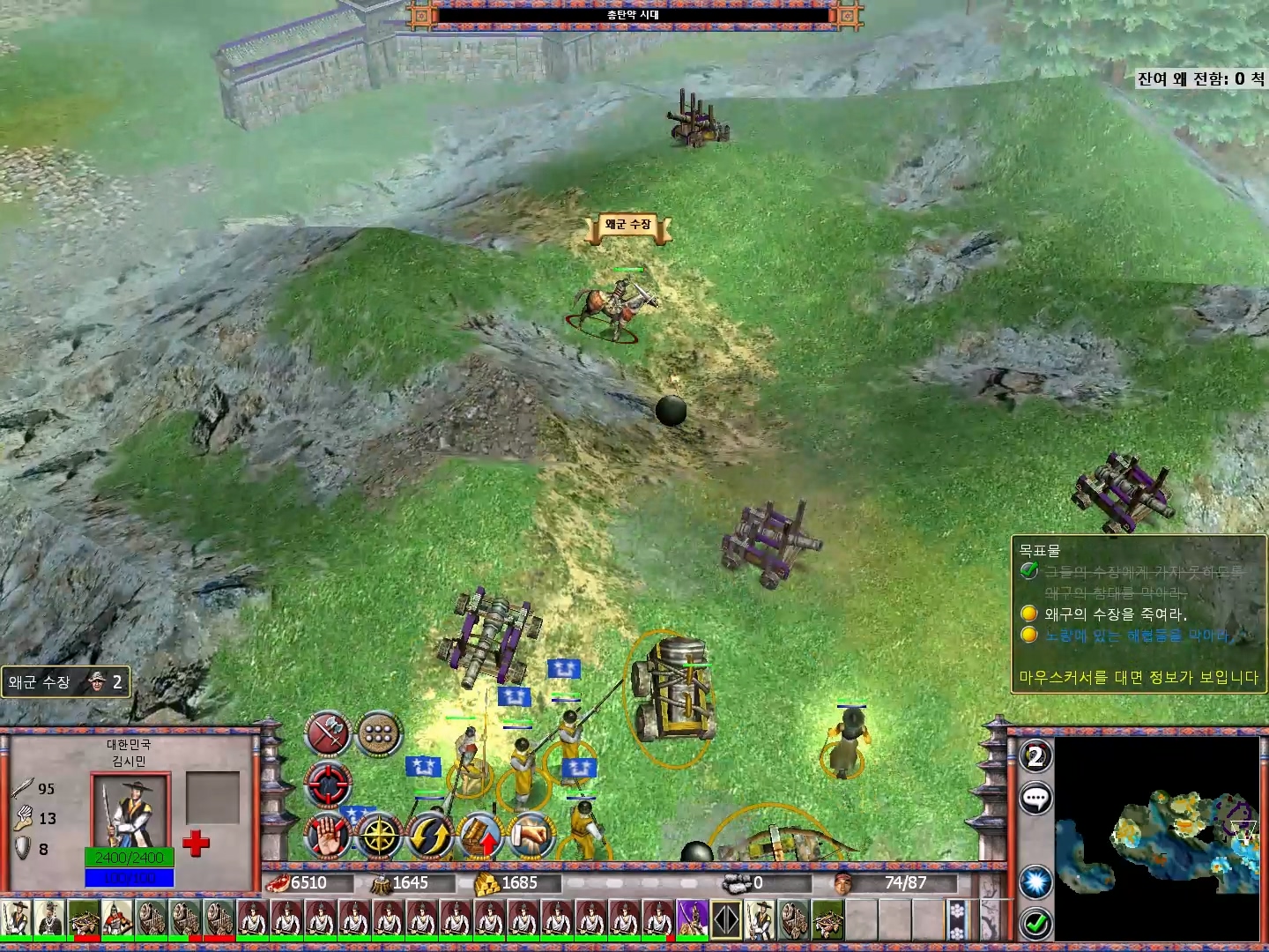 적 기지를 모두 파괴하면 왜장이 언덕 위에서 발견됩니다.